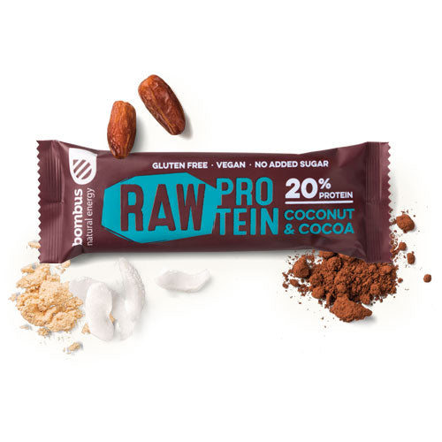 Η μπάρα πρωτεΐνης καρύδα και κακάο της BOMBUS, με ακατέργαστες